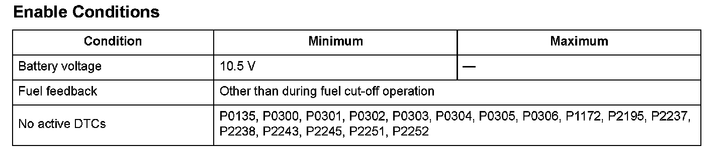 1. When the rear A/F sensor does not activate within a set time after the rear A/F sensor heater starts to warm up (with high rear A/F sensor internal resistance), a malfunction of the rear A/F sensor heater is detected, and a DTC is stored.