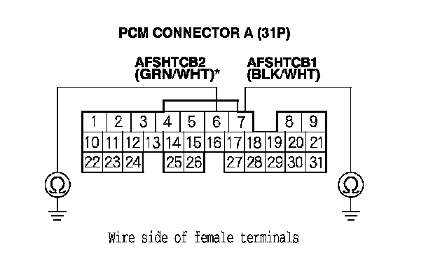 NO - Repair open in the wire between the PCM (A7 (A6)*) and the A/F sensor (Sensor 1), then go to step 23.