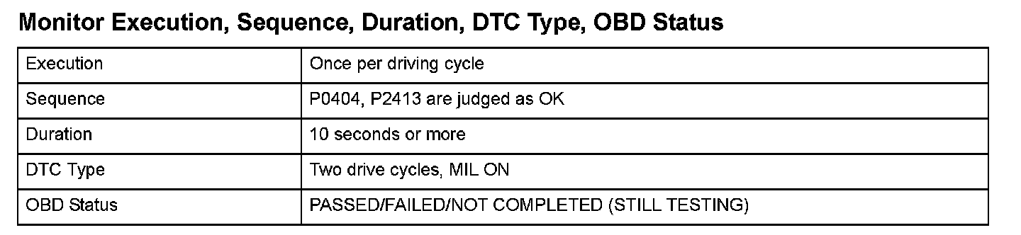 Monitor Execution, Sequence, Duration, DTC Type, OBD Status