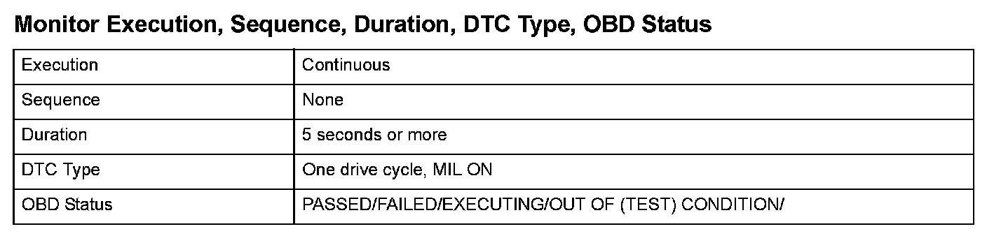 Monitor Execution, Sequence, Duration, DTC Type, OBD Status