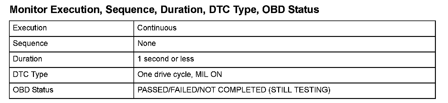 Monitor Execution, Sequence, Duration, DTC Type, OBD Status