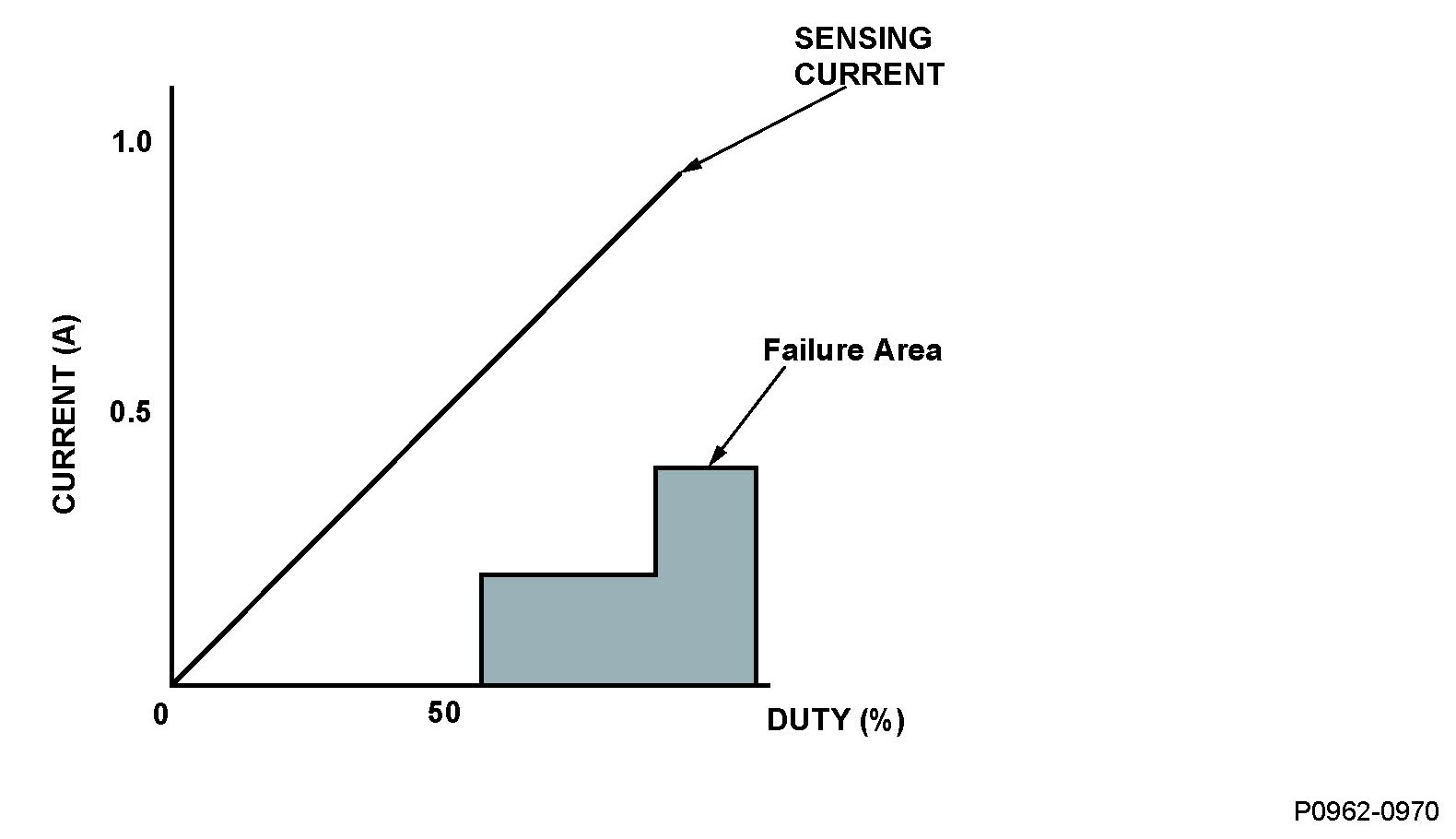 The measured current for the PCM's command value is as specified here for at least 1 second.