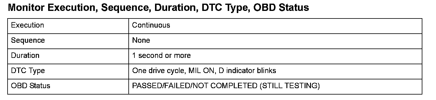 Monitor Execution, Sequence, Duration, DTC Type, OBD Status