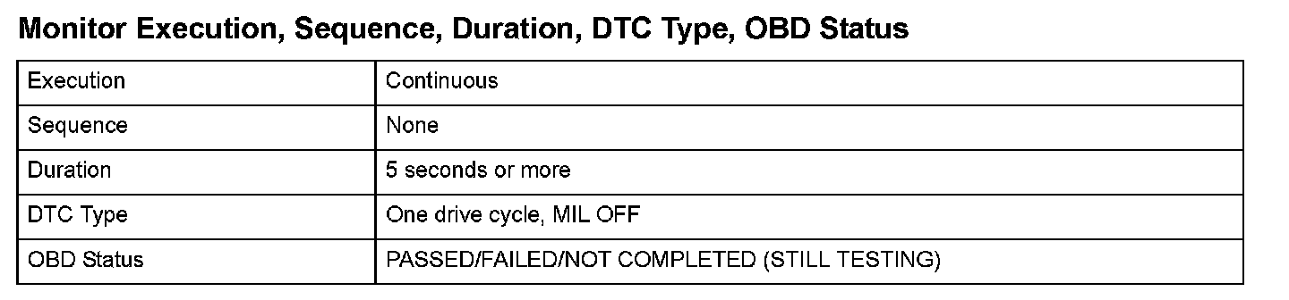 Monitor Execution, Sequence, Duration, DTC Type, OBD Status
