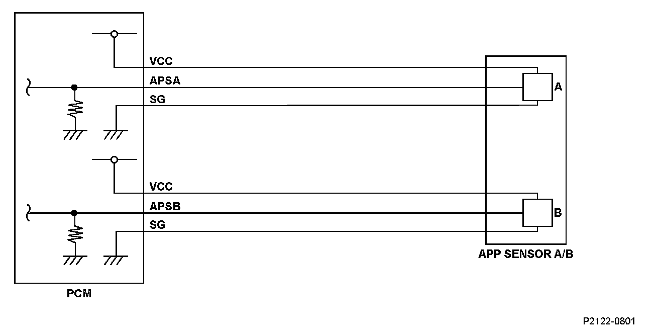 DTC P2128: Accelerator Pedal Position (APP) Sensor B (Throttle Position (TP) Sensor E) Circuit High VoltageGeneral Description