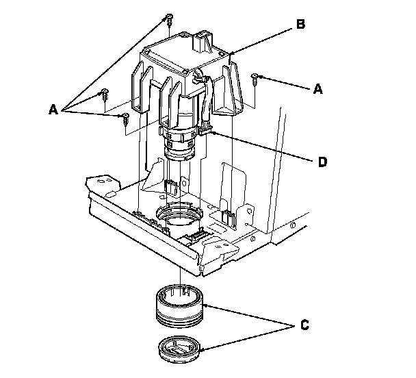 3. Remove the screws (A) and the jog dial (B) from the interface dial (C).