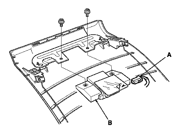 2. Disconnect the 2P connector (A) from the rear interior LF antenna (B).