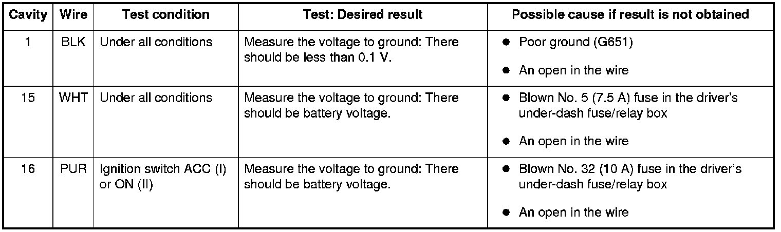 4. Reconnect the connector, and make these input tests at the connector.