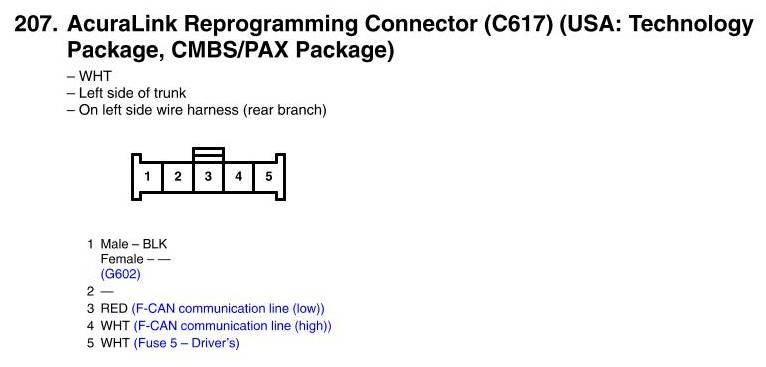 AcuraLink Reprogramming Connector (C617) Connector View (USA: Technology Package, CMBS/PAX Package)