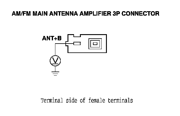 12. Measure the voltage between AM/FM main antenna amplifier lead connector terminal No. 3 AM/FM antenna amplifier lead and body ground.