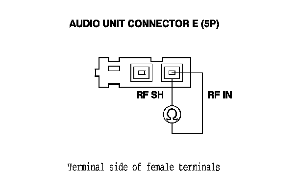 24. Check for continuity between audio unit connector E (5P) terminals No. 1 and No. 2.