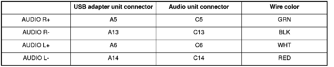 30. Check for continuity between USB adapter unit connector A (14P) and audio unit connector C (14P) according to the table.