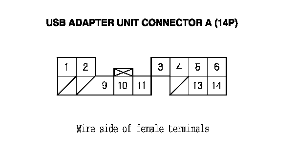 21. Check for continuity between terminals of USB adapter unit connector A (14P) according to the table.