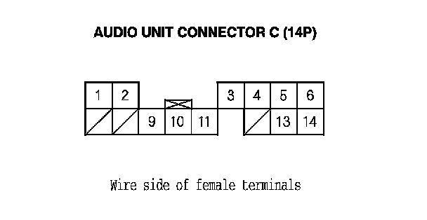 26. Check for continuity between terminals of audio unit connector C (14P) according to the table.