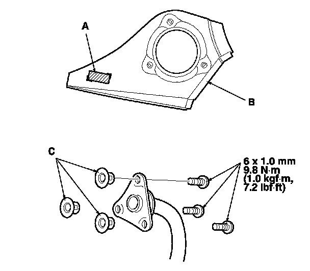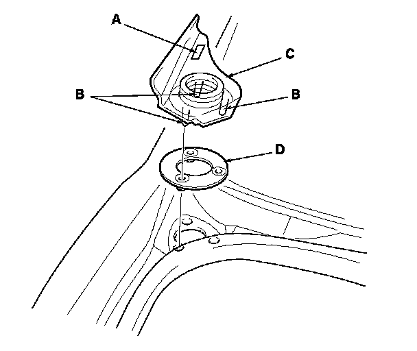 - Before installing the trunk lid, replace the trunk lid insulation washers (C) and the trunk lid mounting bolts with new ones.