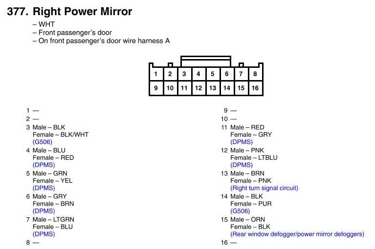 Right Power Mirror Connector View