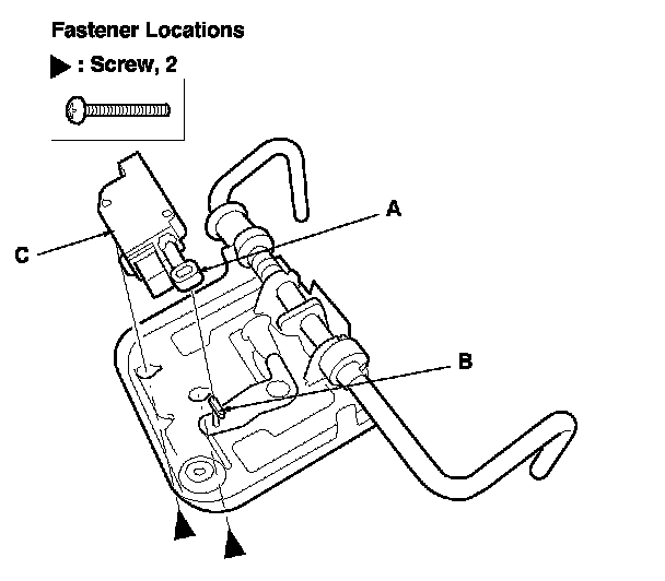 4. Carefully remove the foam as needed from the frame. Remove the screws, and release the arm (A) from the hook (B), then remove the actuator (C).