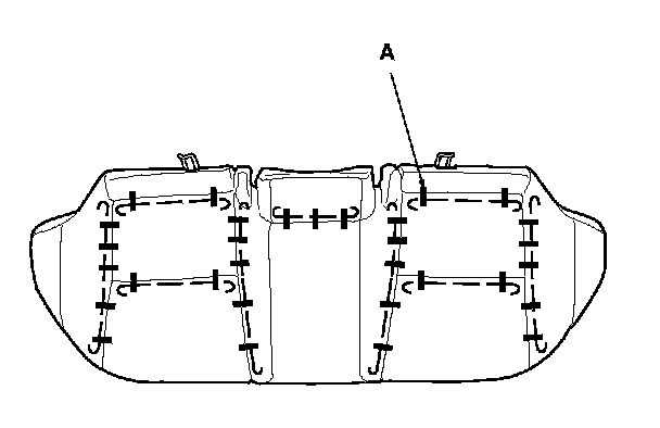 2. Release all the upholstery rings (A) from under the seat cushion, and fold back the seat cushion cover.