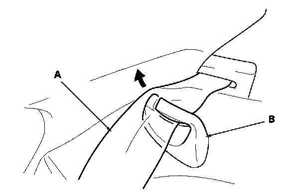 4. Release the seat belt (A) from their guides (B).