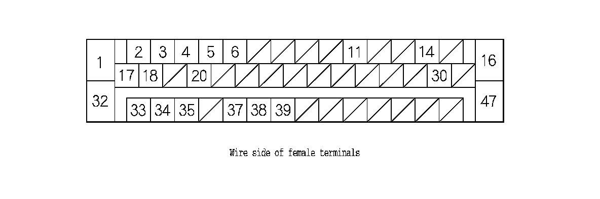 VSA Modulator-Control Unit Inputs and Outputs for 47P Connector (Connector disconnected from the VSA modulator-control unit.)