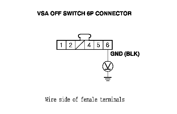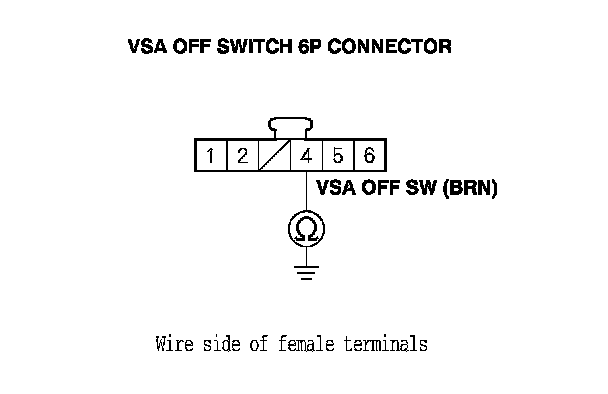 10. Check for continuity between the VSA OFF switch 6P connector terminal No. 4 and body ground.