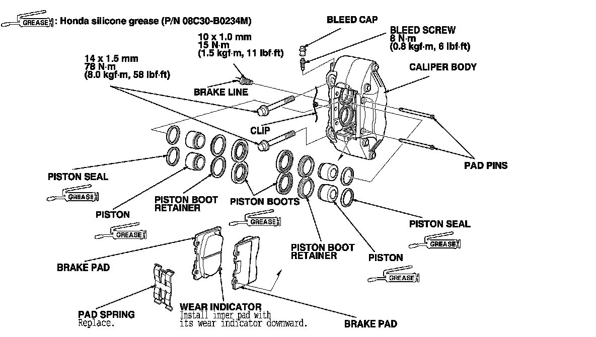 - When reusing pads, always reinstall them in their original positions to prevent loss of braking efficiency.