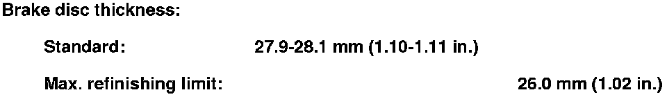5. If the smallest measurement is less than the max. refinishing limit, replace the brake disc. Front Brake Disc Replacement