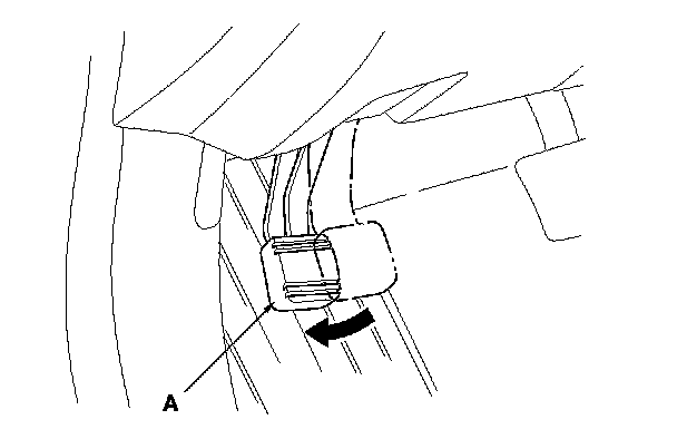 3. Back off the adjusting nut (A) in the parking brake pedal.