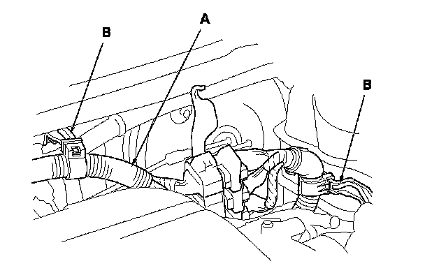 2. Disconnect the vacuum hose (A) from the brake booster (B).