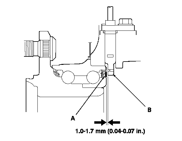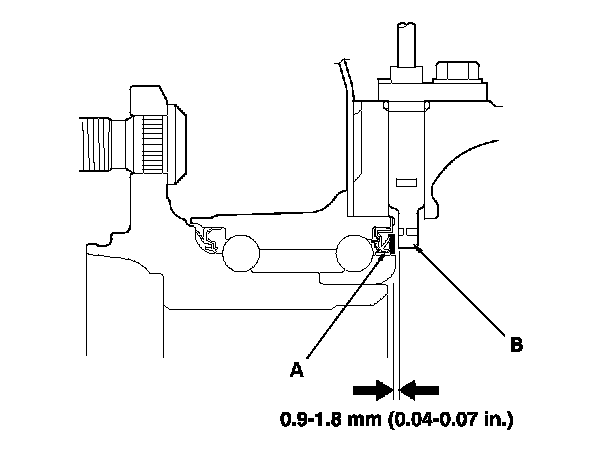 3. Measure the air gap between the wheel speed sensor (B) and the magnetic encoder all the way around while rotating the encoder.