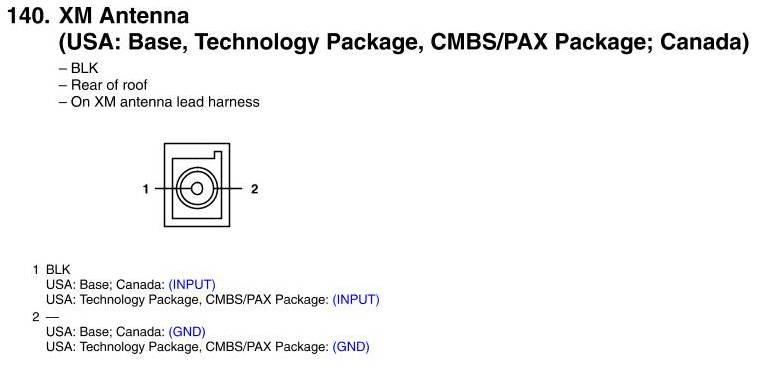 XM Antenna Connector View (USA: Technology Package, CMBS/PAX Package)