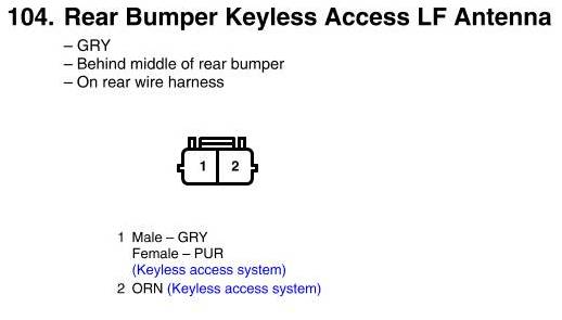 View 104 - Rear Bumper Keyless Access LF Antenna Connector View