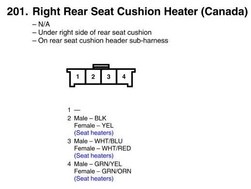 View 201 - Right Rear Seat Cushion Heater Connector View (Canada)