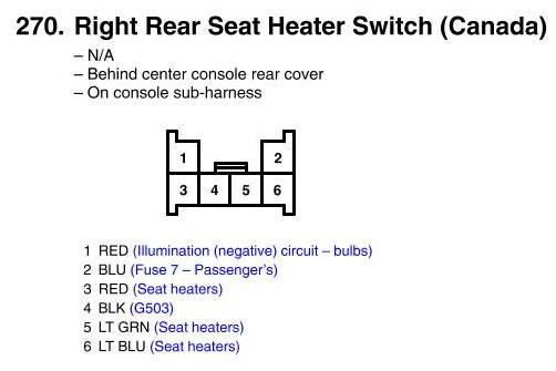 View 270 - Right Rear Seat Heater Switch Connector View (Canada)