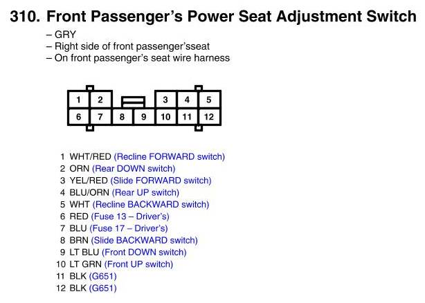 View 310 - Front Passenger's Power Seat Adjustment Switch Connector View