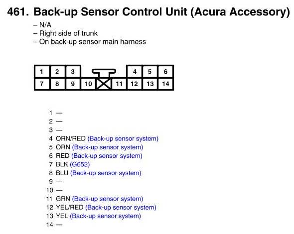 Back-up Sensor Control Unit Connector View (Acura Accessory)