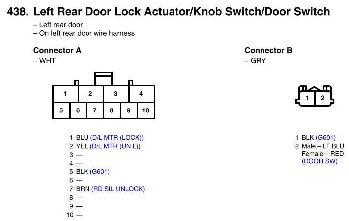 Left Rear Door Lock Actuator/Knob Switch/Door Switch Connector View