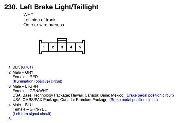 Left Brake Light/Taillight Connector View