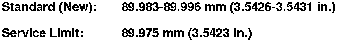 6. Calculate the difference between cylinder bore diameter and piston diameter. If the clearance is near or exceeds the service limit, inspect the piston and cylinder bore for excessive wear.