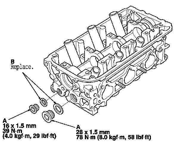NOTE: When installing the sealing bolts (A), always use a new washer (B).