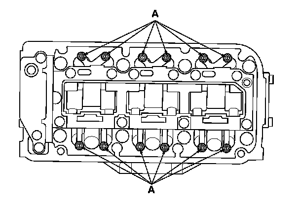 3. Remove the rocker shaft bridge mounting bolts, the rocker shaft holder mounting bolts, and the rocker arm assembly.