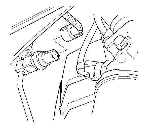 18. Disconnect the brake booster vacuum hose (A) and the evaporative emission (EVAP) canister hose (B).