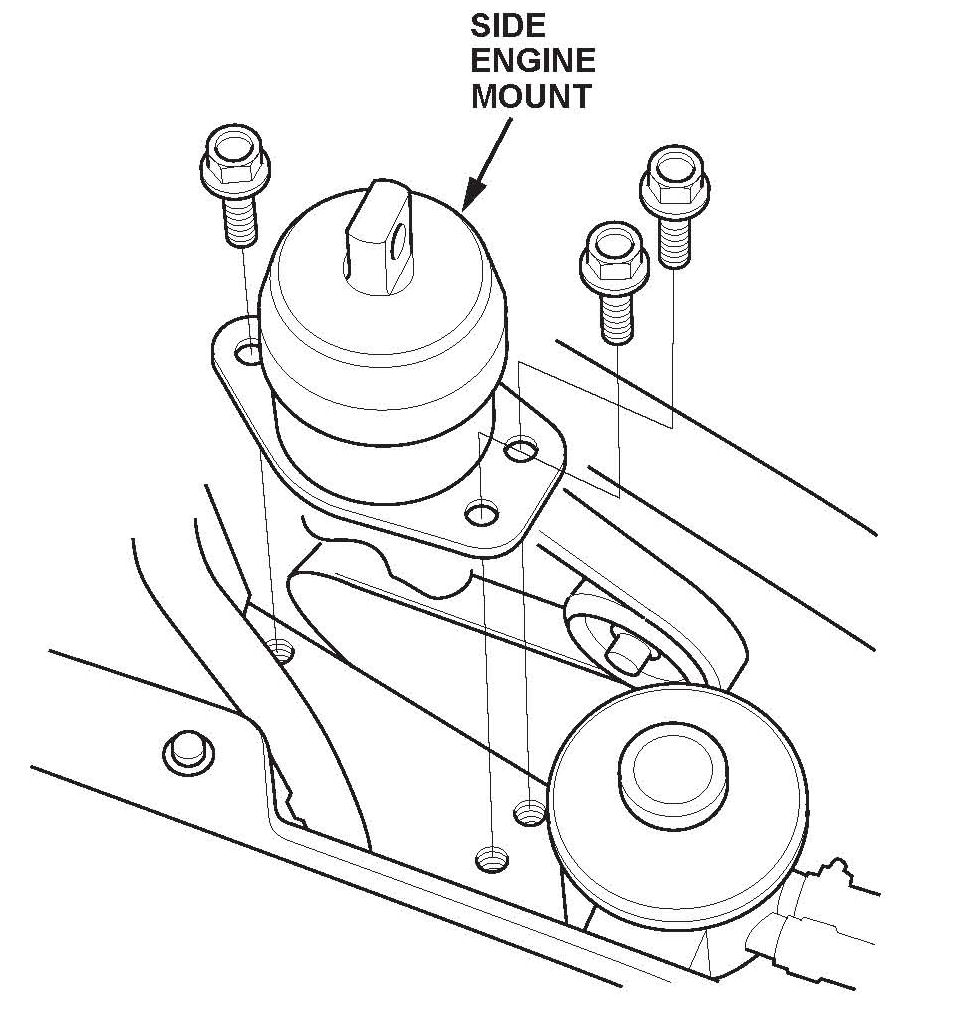 4. Reinstall the new side engine mount and tighten the bolts to 54 N.m (40 lb-ft).