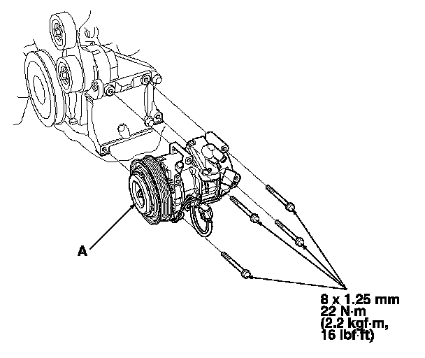 7. Install the A/C compressor in the reverse order of removal, and note these items: