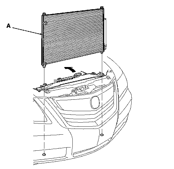 10. Install the A/C condenser in the reverse order of removal, and note these items: