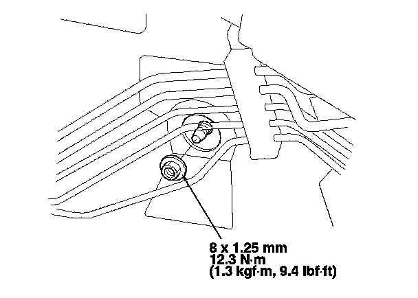 6. Remove the mounting nut from the heater unit. Take care not to damage or bend the fuel lines and the brake lines, etc.