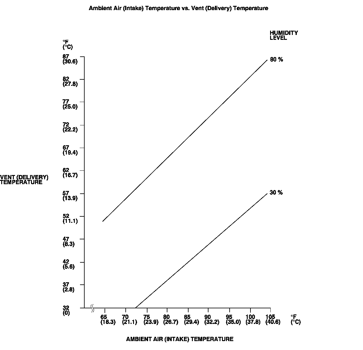 - Draw a horizontal line from the vent (delivery) temperature mark until it intersects the vertical line.