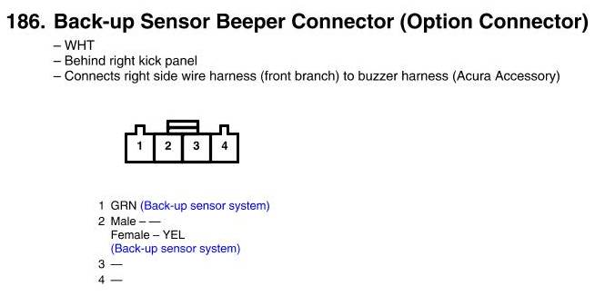 Back-up Sensor Beeper Connector (Option Connector) Connector View