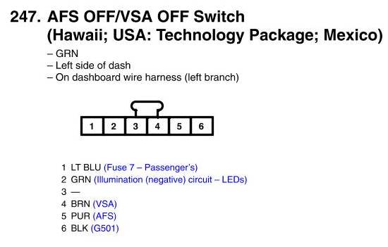 AFS Off/VSA Off Switch Connector View (Hawaii; USA: Technology Package; Mexico)