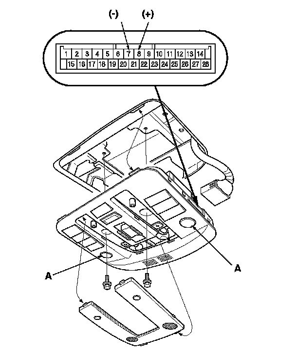 1. Remove the roof console, and disconnect the 28P connector. Roof Console Replacement